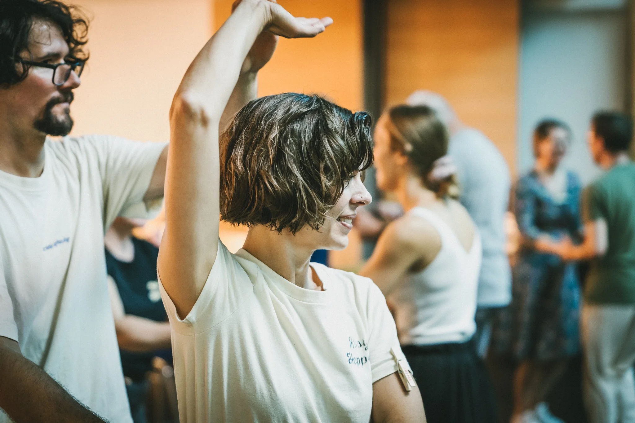 Nutze die Weekly Social & Practice Time für freies Üben. Probier dich als DJ aus, übe bereits Gelerntes oder zeig deinen Freund:innen, was Lindy Hop ist. Von freiem Üben bis zu spontanen Themen-Specials aus der Community ist alles möglich!